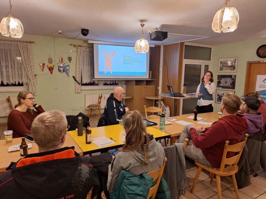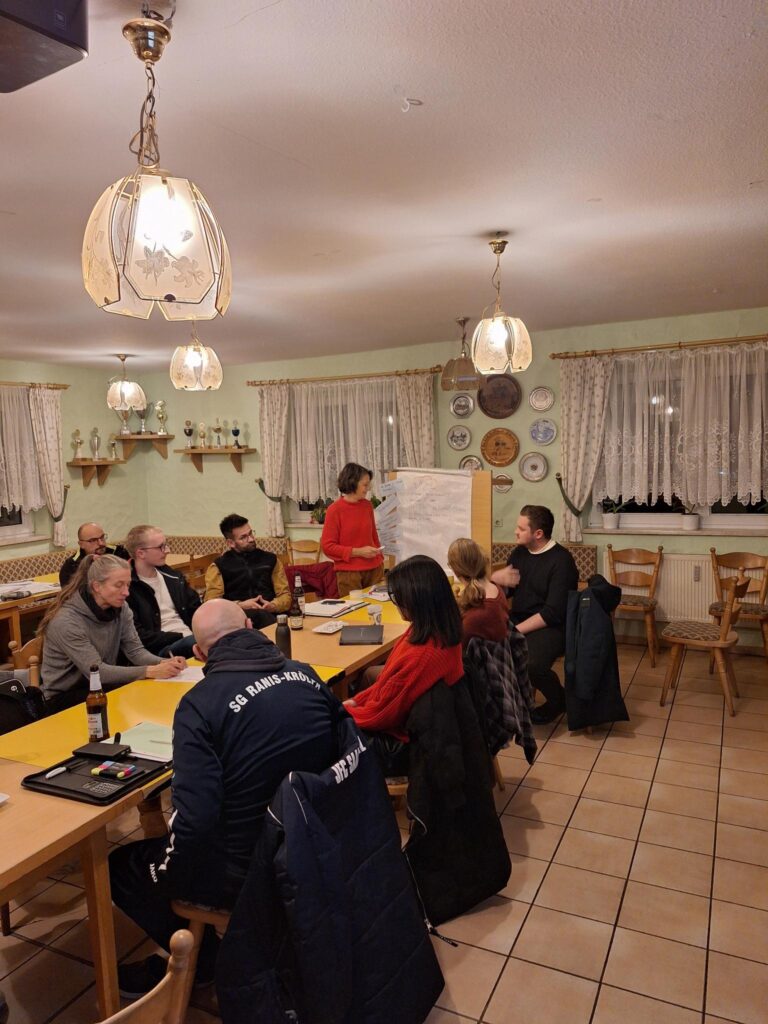 Beim Themenabend kamen Vertreterinnen und Vertreter genau dieser Vielfalt zusammen: Karnevalsvereine, Sportvereine, Jugendförderung, Feuerwehr und viele andere Organisationen nutzten die Gelegenheit, sich auszutauschen, voneinander zu lernen und gemeinsame Herausforderungen zu diskutieren. Fachliche Impulse gab es von Doris Voll, Coach, Organisationsberaterin und Gründerin der Ehrenamtsstiftung Jena, sowie Natalie Rexrodt vom Landessportbund Thüringen, die beide wertvolle Expertise in den Abend einbrachten.